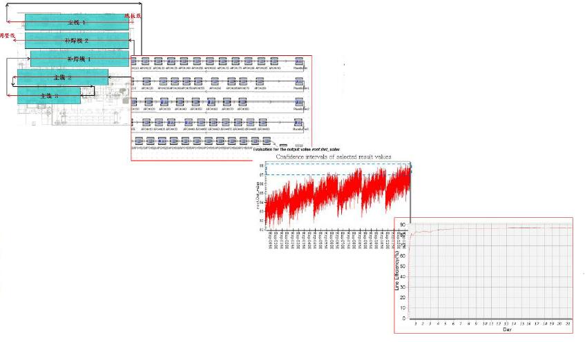 運用Plant Simulation物流仿真模擬軟件對產線建模仿真,調整緩存BUFFER容量或工藝瓶頸分析,從而實現產線的開通率和穩定節拍。